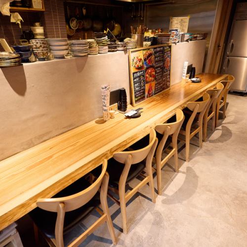 オープンキッチンからは調理の音や立ちのぼる香りが漂い、五感を使って臨場感たっぷりに食の時間を楽しめます。活気あふれる調理風景を眺めながら、心温まる憩いのひとときをお過ごしください。